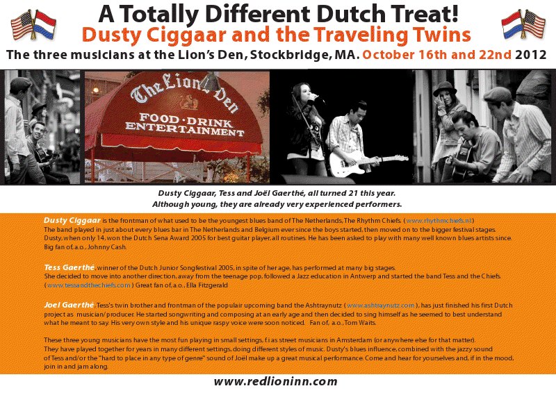 And back from the USA, directly followed by weeks full with one exam after the other. Why did I enlist for this? One wonders…If you followed any of the FB news you might have noticed we did have two great gigs in Stockbridge, Massachusetts at the notorious Red Lion Inn, way down in their Lion’s Den. Live music, seven days a week! We got to fill in on two most awesome nights. The 2nd evening we played, the place was packed. Randi Craft (local booker), thank you! Glenn’s (and Nicole’s) wedding was a most romantic setting. They made the gods put on a big smile especial for them that day. Happiness all around.